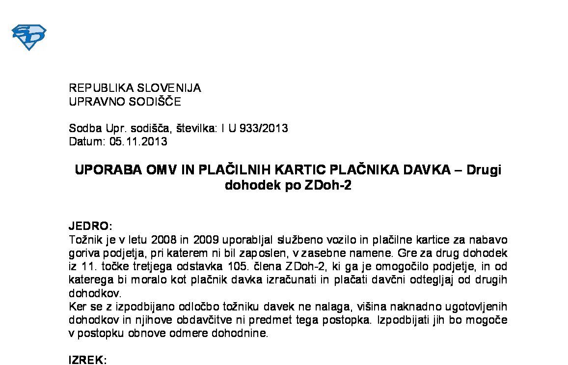 PREJEM POSLOVNEGA DELEŽA V DRUŽBI OB ANGAŽIRANJU PRI SANACIJI DRUŽBE – Darilo, ki se obdavčuje po ZDDD, ali dohodek obdavčen po ZDoh-2 (I U 1495/2022-13) 20.11.2024 10.07.2025