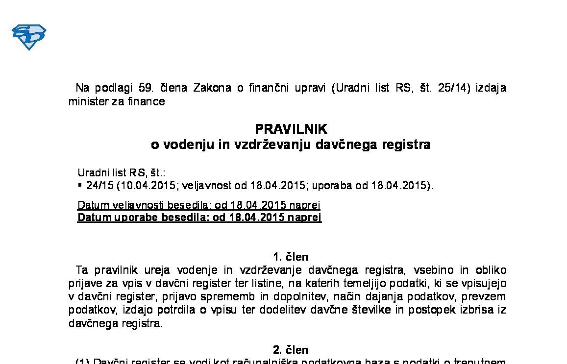 Uredba o določitvi finančnih uradov Finančne uprave Republike Slovenije 22.03.2025 10.03.2025