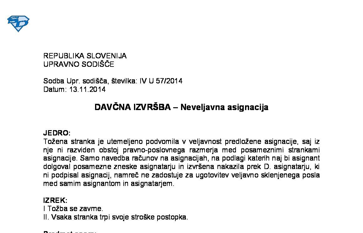DIN IN IZDAJA POTRJENEGA RAČUNA – Ugotovitvena odločba – Pomanjkljiv izrek odločbe (I U 11/2023-13) 06.01.2025 11.07.2025