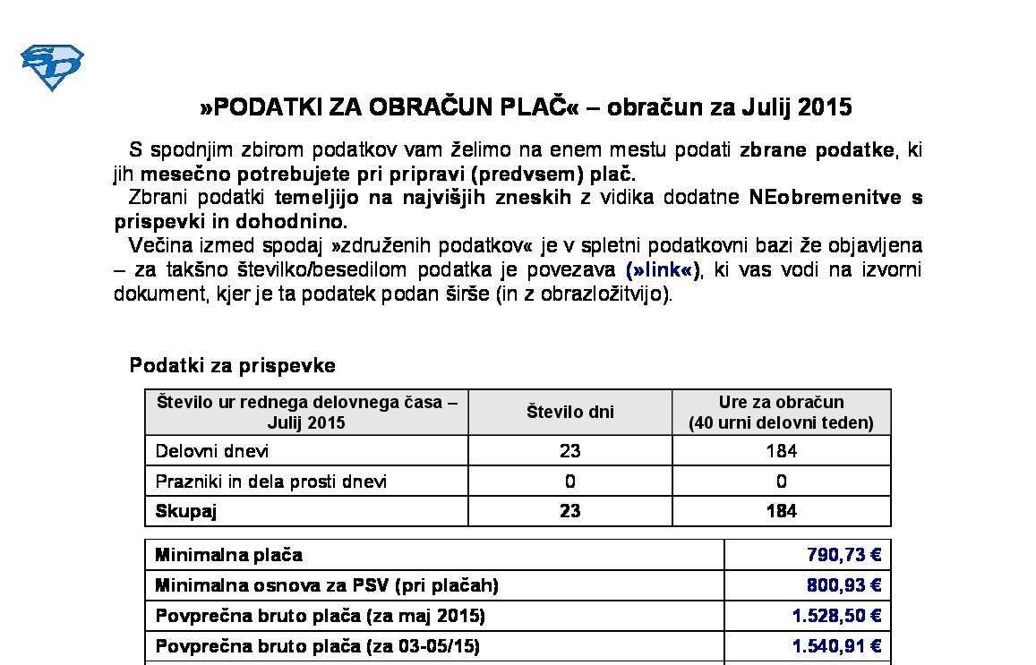 PODATKI ZA OBRAČUN PLAČ – obračun za JULIJ 2025 22.07.2025