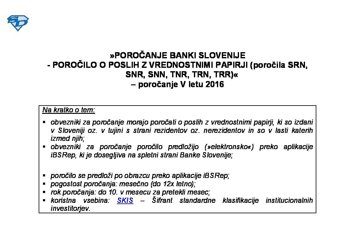 POROČANJE BANKI SLOVENIJE - POROČILO O POSLIH Z VREDNOSTNIMI PAPIRJI (poročila SRN, SNR, SNN, TNR, TRN, TRR) - poročanje v letu 2025 12.12.2024