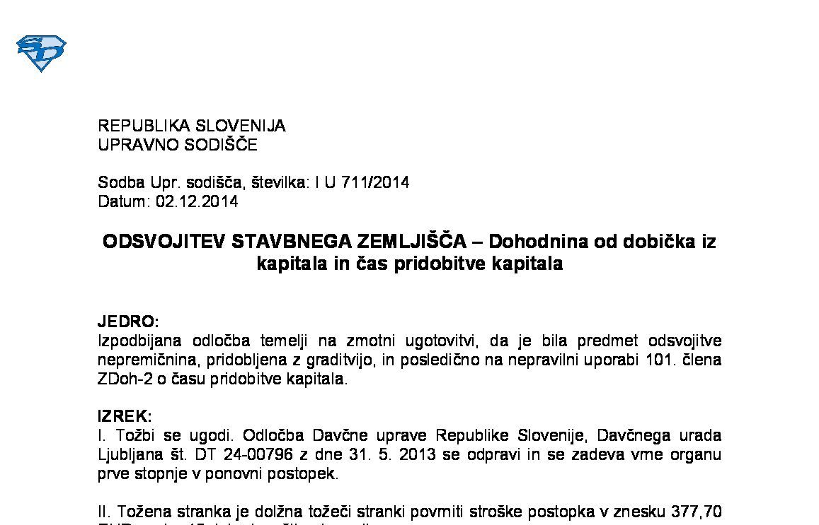 PREJEM POSLOVNEGA DELEŽA V DRUŽBI OB ANGAŽIRANJU PRI SANACIJI DRUŽBE – Darilo, ki se obdavčuje po ZDDD, ali dohodek obdavčen po ZDoh-2 (I U 1495/2022-13) 20.11.2024 10.07.2025