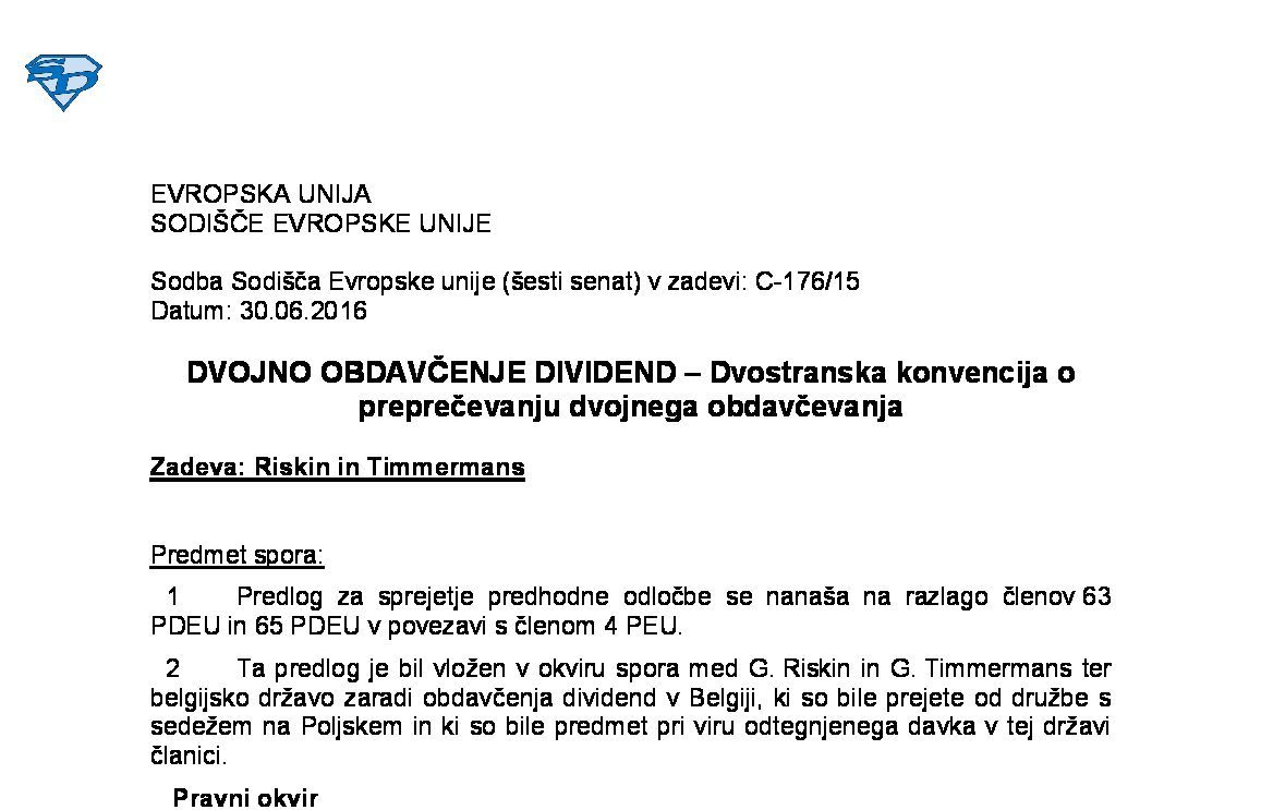 DOHODNINA – IZRAČUN OSNOVNEGA OSEBNEGA ODBITKA ZA VZDRŽEVANEGA OTROKA, KI JE PREJEL POMOČ ZA UČNO MOBILNOST V OKVIRU PROGRAMA ERAZMUS+ – Obdavčitev štipendij za olajšanje mobilnosti fizičnih oseb, na katere se nanaša ta uredba – Omejitev prostega gibanja – Sorazmernost (C-277/23) 16.01.2025 17.01.2025