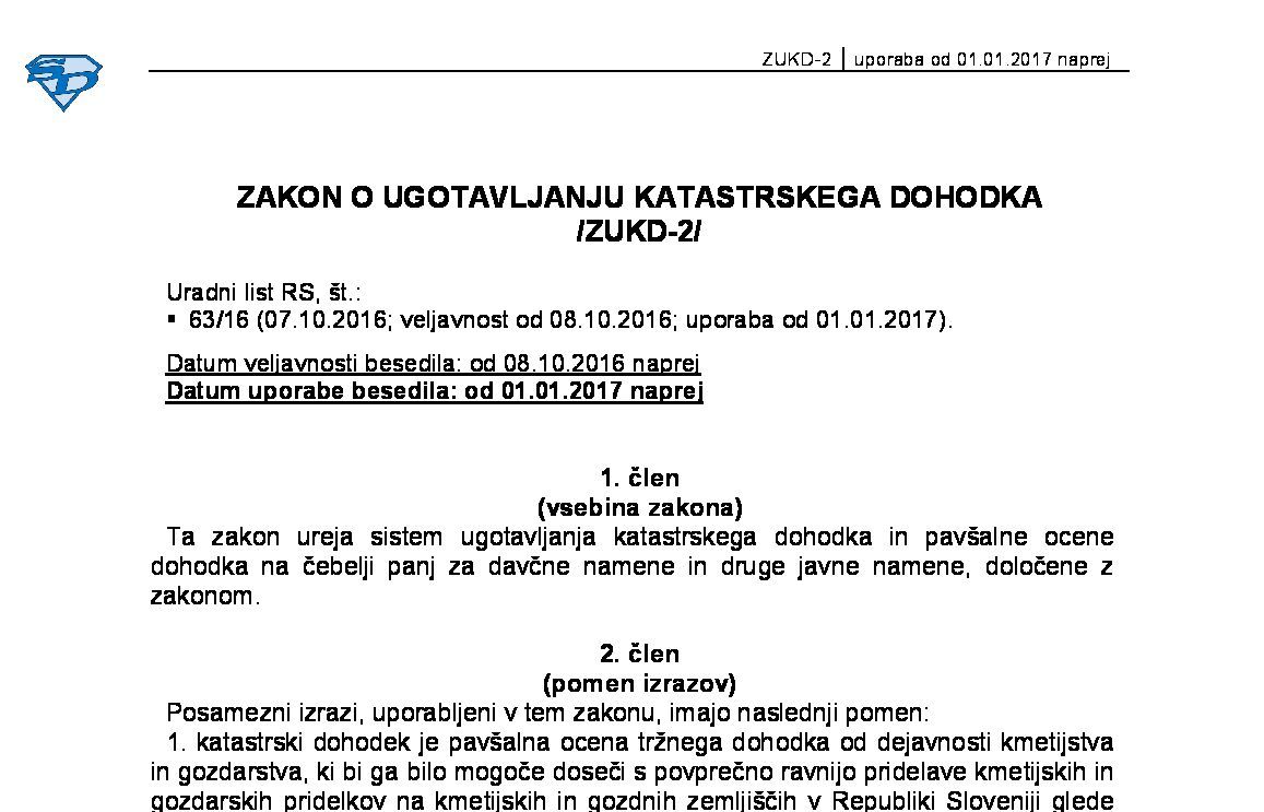 Uredba o določitvi lestvic katastrskega dohodka, pavšalne ocene dohodka na čebelji panj in območij posebnih režimov za kmetovanje in gospodarjenje z gozdovi za obdobje 2026–2028 01.01.2026 26.06.2025