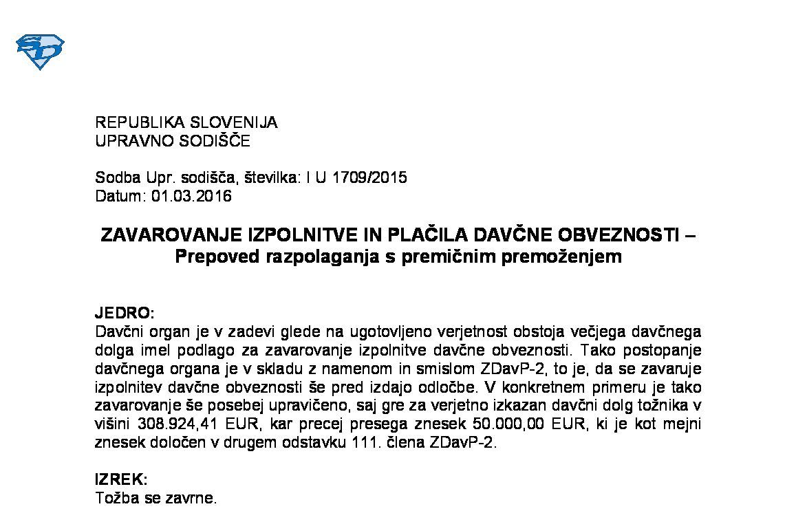 ZASTARANJE PRAVICE DO ODMERE DAVKA – Prekluzija (I U 765/2015) 06.09.2016 16.01.2025