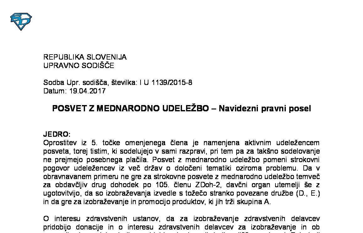 PREJEM POSLOVNEGA DELEŽA V DRUŽBI OB ANGAŽIRANJU PRI SANACIJI DRUŽBE – Darilo, ki se obdavčuje po ZDDD, ali dohodek obdavčen po ZDoh-2 (I U 1495/2022-13) 20.11.2024 10.07.2025