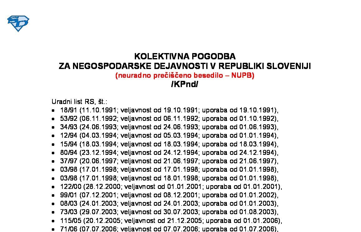 22.0 KOLEKTIVNA POGODBA ZA NEGOSPODARSKE DEJAVNOSTI V REPUBLIKI SLOVENIJI (KPnd) 27.12.2025 16.12.2025