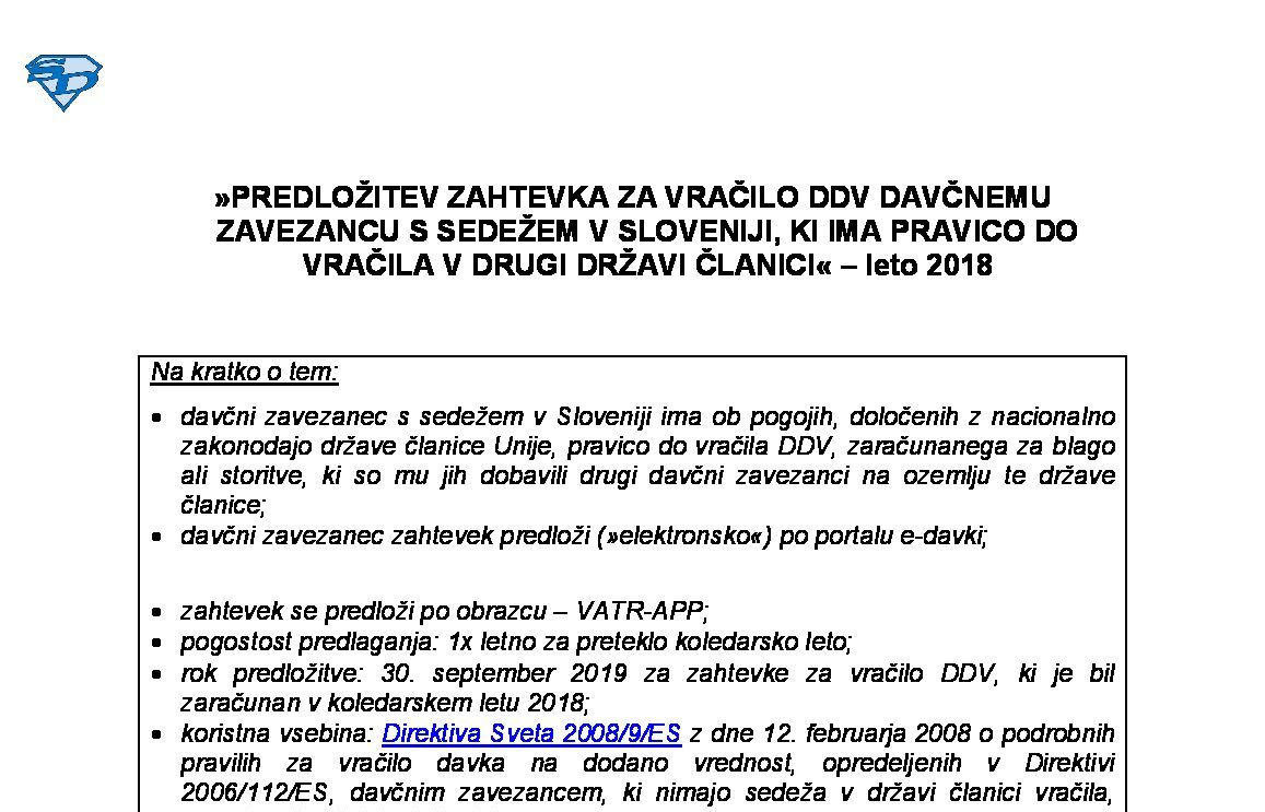 PREDLOŽITEV ZAHTEVKA ZA VRAČILO DDV DAVČNEMU ZAVEZANCU S SEDEŽEM V TRETJI DRŽAVI - leto 2025 18.12.2025