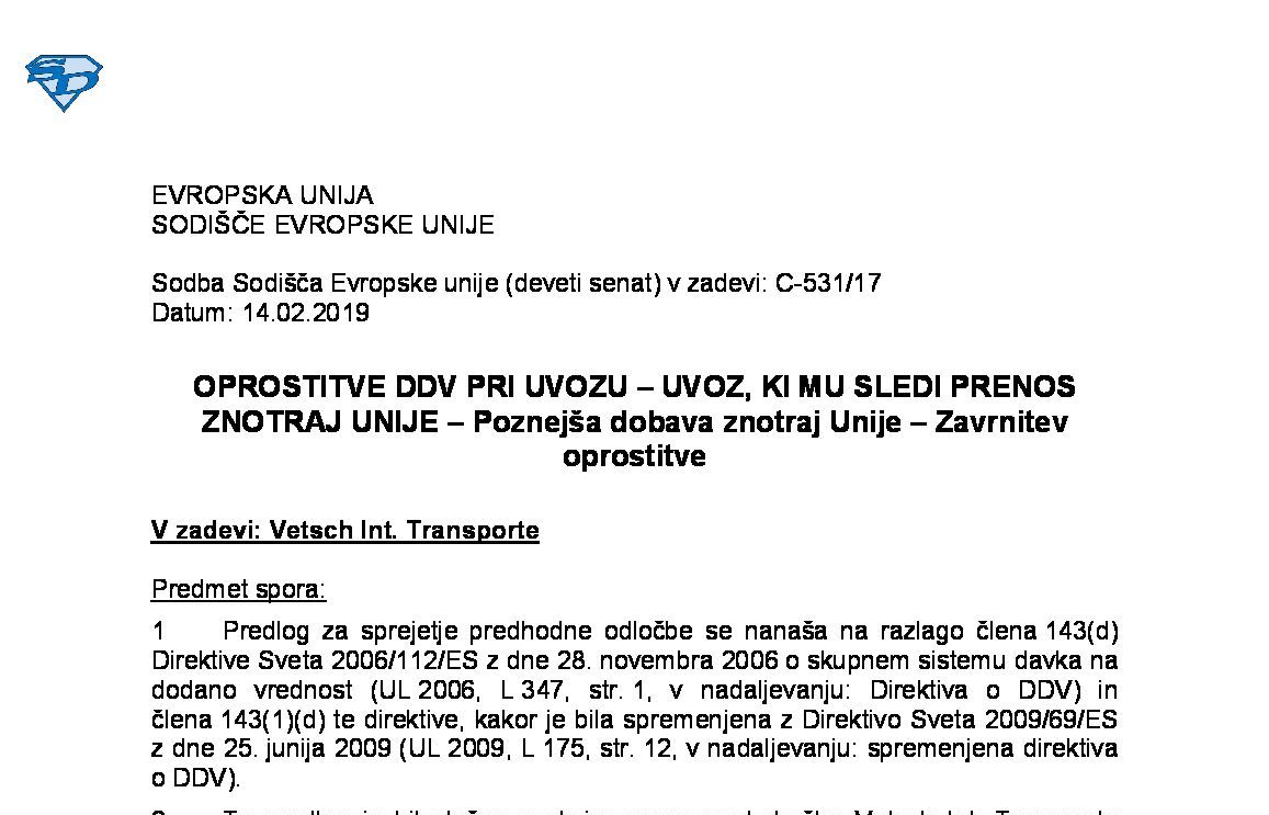 POGOJI ZA OPROSTITEV DOBAVE BLAGA ZNOTRAJ UNIJE – DOMNEVA – ZAHTEVANI DOKAZI – Člen 45a Izvedbene uredbe (EU) št. 282/2011 (C-639/24) 13.11.2025 14.11.2025