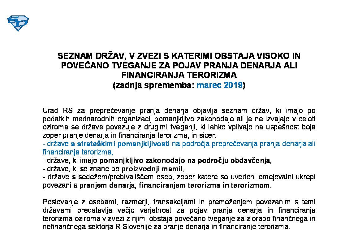 Seznam držav, v zvezi s katerimi obstaja visoko in povečano tveganje za pojav pranja denarja ali financiranja terorizma (zadnja sprememba: 28.10.2025) 29.10.2025