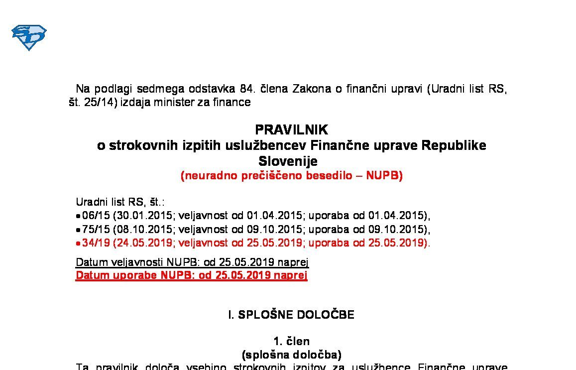 | Pravilnik o službeni izkaznici uradnih oseb Finančne uprave Republike Slovenije (NUPB - neuradno prečiščeno besedilo) | 30.09.2022 | [!] | 19.04.2022 | |