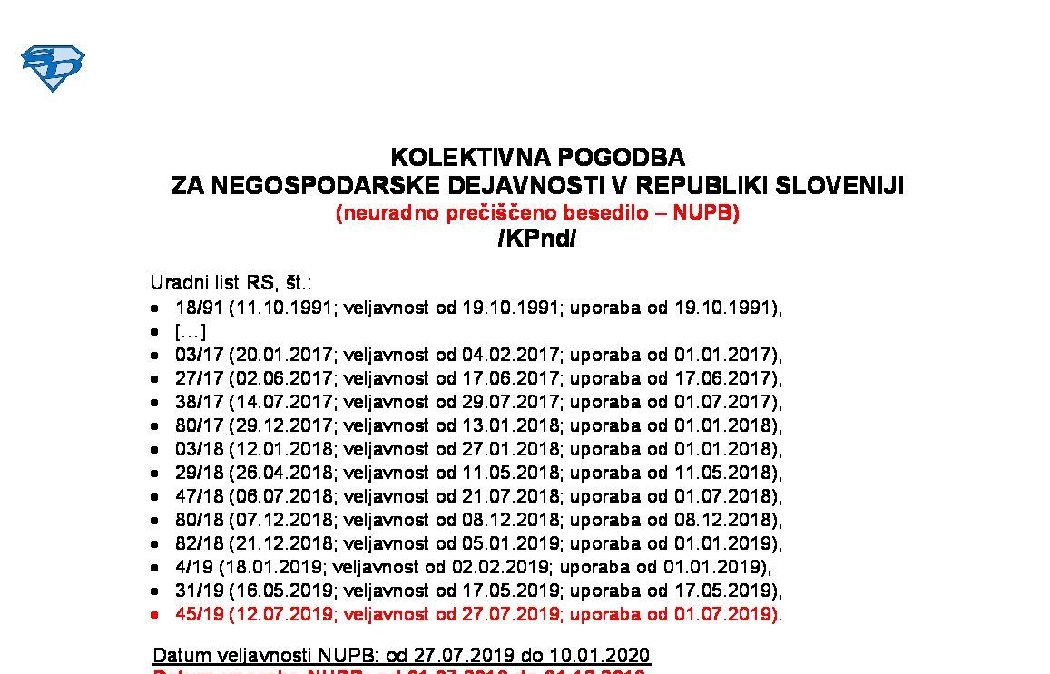 22.0 KOLEKTIVNA POGODBA ZA NEGOSPODARSKE DEJAVNOSTI V REPUBLIKI SLOVENIJI (KPnd) 27.12.2025 16.12.2025