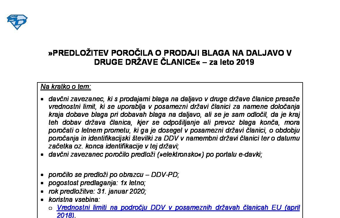 PREDLOŽITEV POROČILA O PRODAJI BLAGA NA DALJAVO V DRUGE DRŽAVE ČLANICE – za leto 2025 16.12.2025