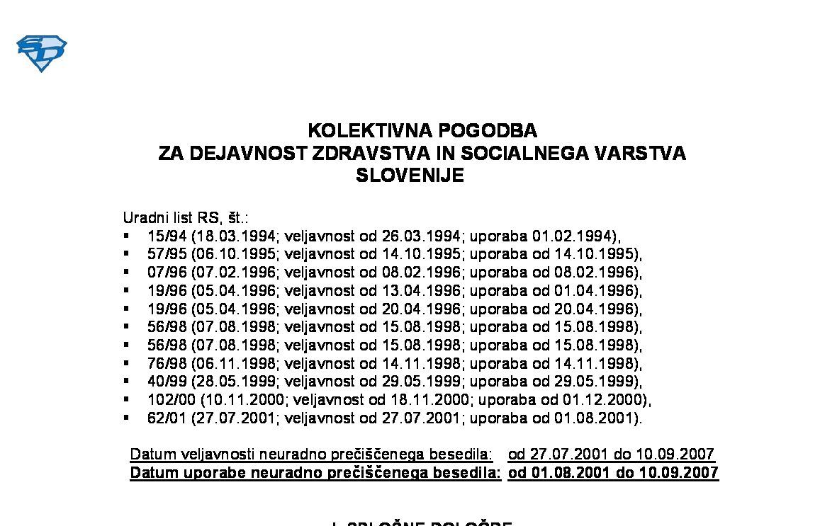 21.0 KOLEKTIVNA POGODBA ZA DEJAVNOST ZDRAVSTVA IN SOCIALNEGA VARSTVA SLOVENIJE 27.12.2025 16.12.2025
