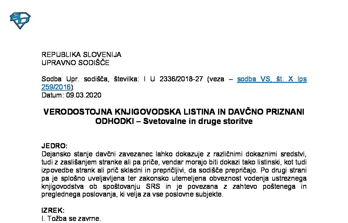 VERODOSTOJNA KNJIGOVODSKA LISTINA – Potni nalog – Dokazovanje nastanka poslovnega dogodka (I U 1898/2021-11) 21.05.2024 14.04.2025