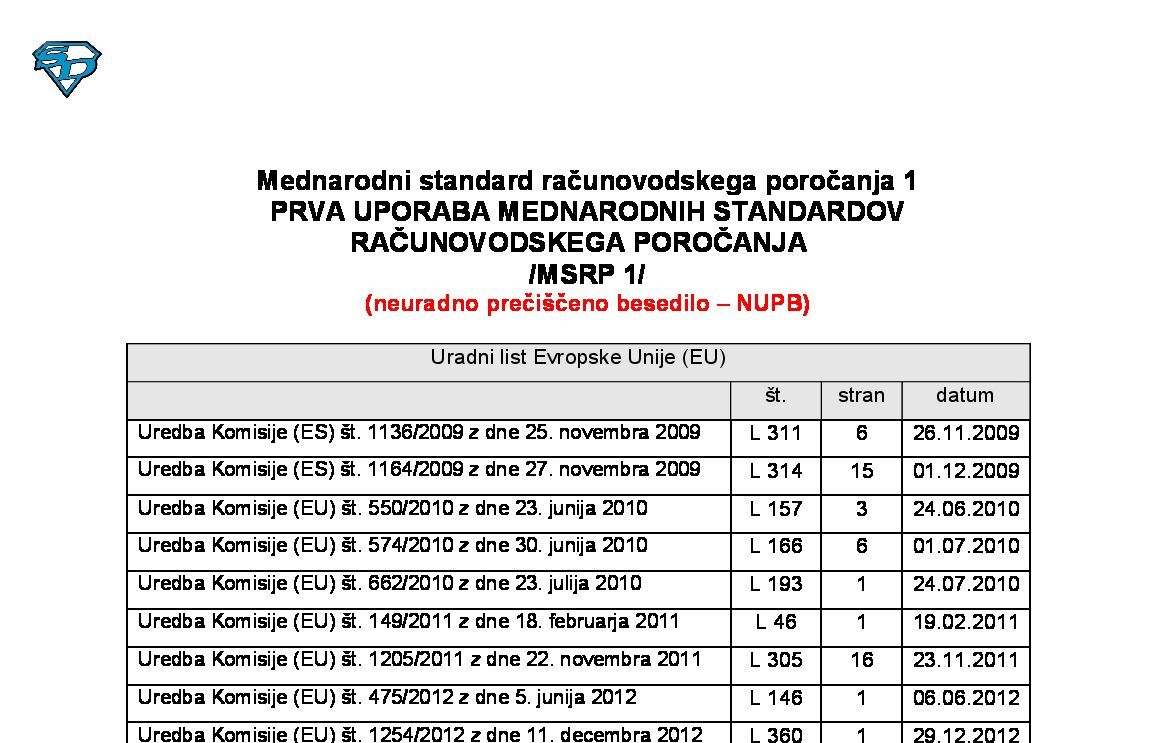 | 01. MSRP 1 - Prva uporaba Mednarodnih standardov računovodskega poročanja (NUPB - neuradno prečiščeno besedilo) | 01.01.2026 | [!] | 14.07.2025 | |