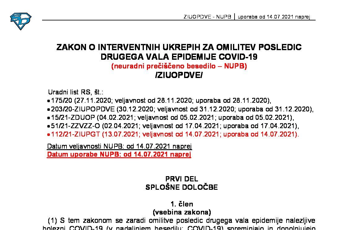 | ZAKON O INTERVENTNIH UKREPIH ZA POMOČ PRI OMILITVI POSLEDIC DRUGEGA VALA EPIDEMIJE COVID-19 (ZIUPOPDVE - neuradno prečiščeno besedilo) | 31.12.2023 | 16.02.2024 | ||