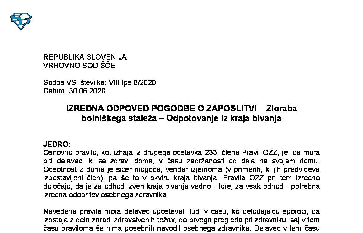 PRAVNOMOČNA SODBA IN OBSTOJ DELOVNEGA RAZMERJA – Podlaga in obseg zavarovanja (VIII Ips 26/2024) 11.04.2025 26.05.2025