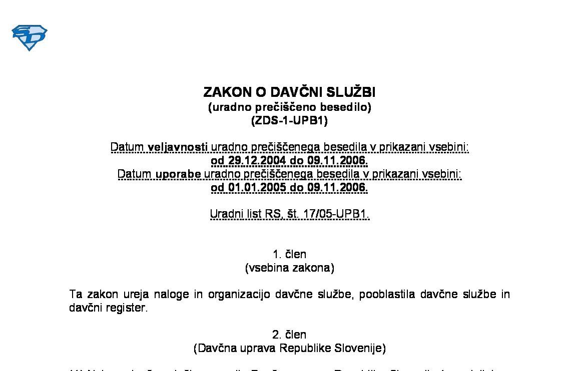 | ZAKON O FINANČNI UPRAVI (ZFU - neuradno prečiščeno besedilo) | 01.01.2026 | [!] | 05.12.2025 | |