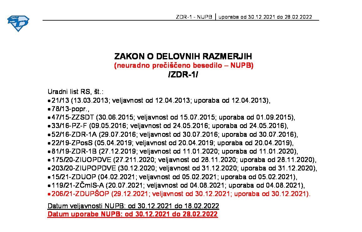 ZAKON O DELOVNIH RAZMERJIH (ZDR-1 - neuradno prečiščeno besedilo) 20.09.2025 [!] 24.09.2025