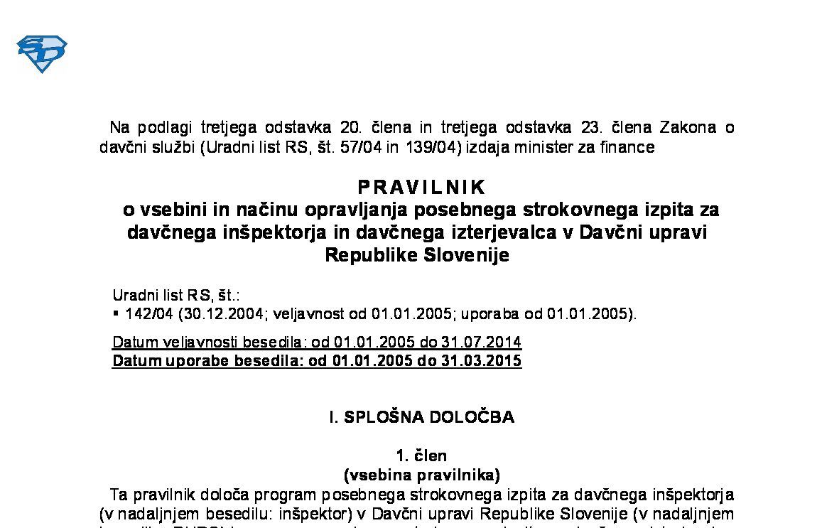 Pravilnik o službeni izkaznici uradnih oseb Finančne uprave Republike Slovenije (NUPB - neuradno prečiščeno besedilo) 30.09.2022 [!] 19.04.2022