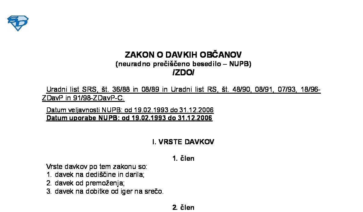 ZAKON O DAVKIH OBČANOV (ZDO - neuradno prečiščeno besedilo (NUPB FURS)) 25.03.2008 09.07.2015