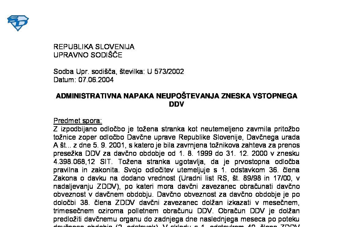 IZPOLNJEVANJE POGOJEV ZA DOBAVO BLAGA ZNOTRAJ UNIJE, OPROŠČENO PLAČILA DDV NA PODLAGI 46. ČLENA ZDDV-1 – Nepopolne CMR listine (I U 1704/2021-38) 27.11.2024 15.10.2025