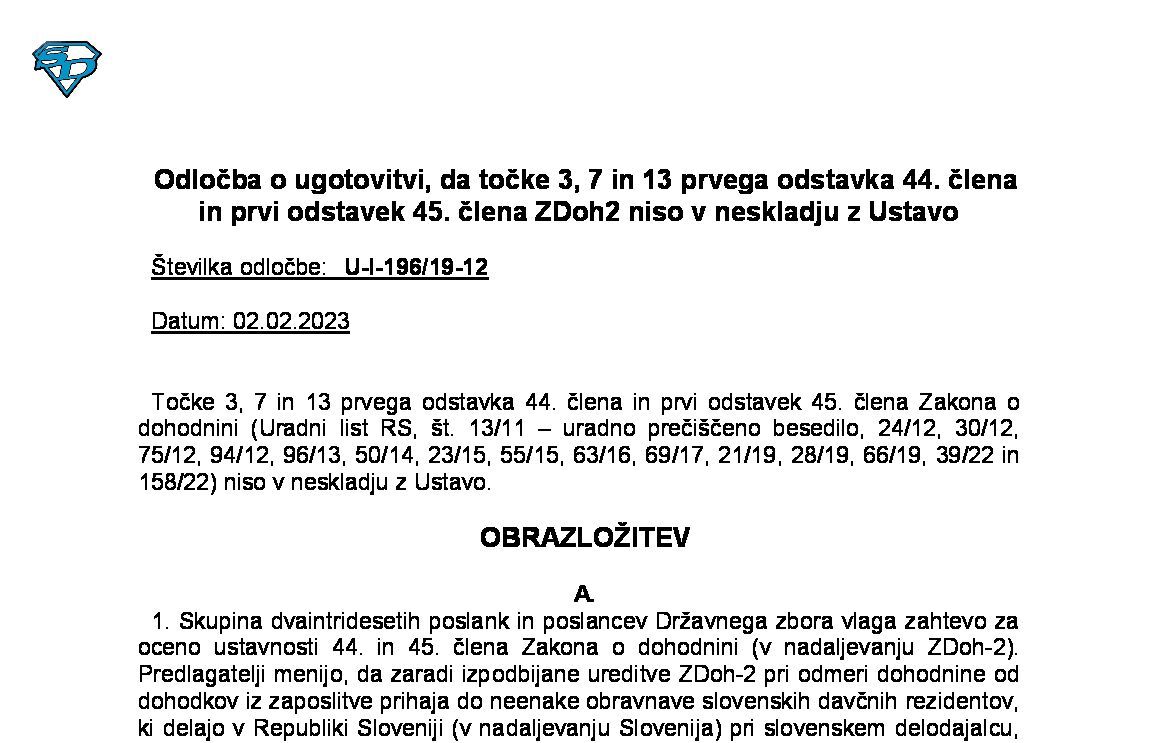 Odločba Ustavnega sodišča - 3. poved drugega odstavka 98. člena ZDoh-2 (02.02.2024) 18.01.2024 05.02.2024