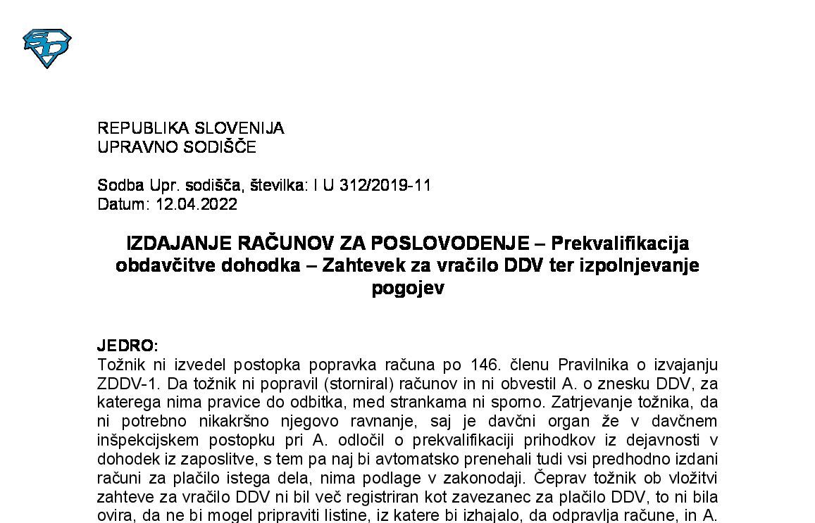IZPOLNJEVANJE POGOJEV ZA DOBAVO BLAGA ZNOTRAJ UNIJE, OPROŠČENO PLAČILA DDV NA PODLAGI 46. ČLENA ZDDV-1 – Nepopolne CMR listine (I U 1704/2021-38) 27.11.2024 15.10.2025