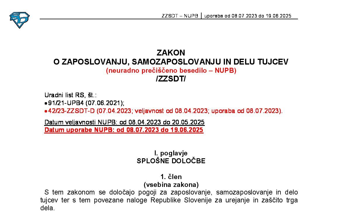 ZAKON O UREJANJU TRGA DELA (ZUTD - neuradno prečiščeno besedilo) 29.10.2025 [!] 29.10.2025