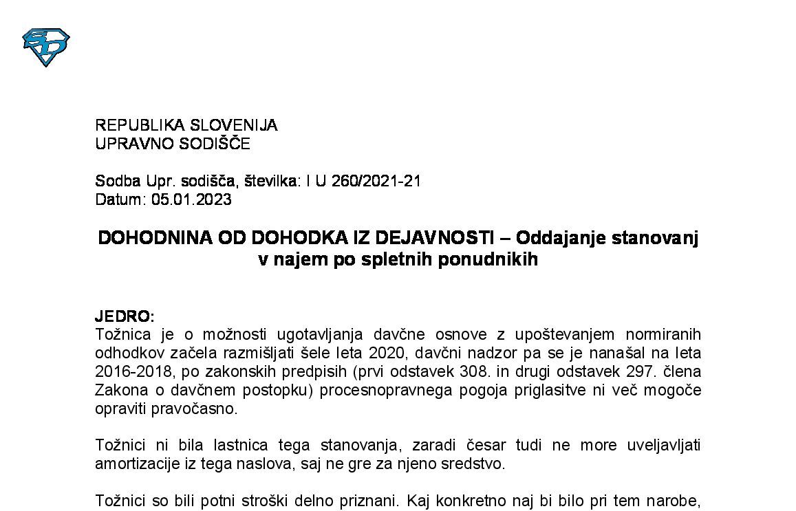 OPRAVLJANJE DEJAVNOSTI S SKRAJŠANIM DELOVNIM ČASOM ZARADI STARŠEVSTVA – Ugotavljanje davčne osnove z upoštevanjem normiranih odhodkov in izpolnjevanje pogoja obvezno zavarovane vsej ene osebe za polni delovni čas (I U 1630/2022-15) 13.11.2025 13.11.2025