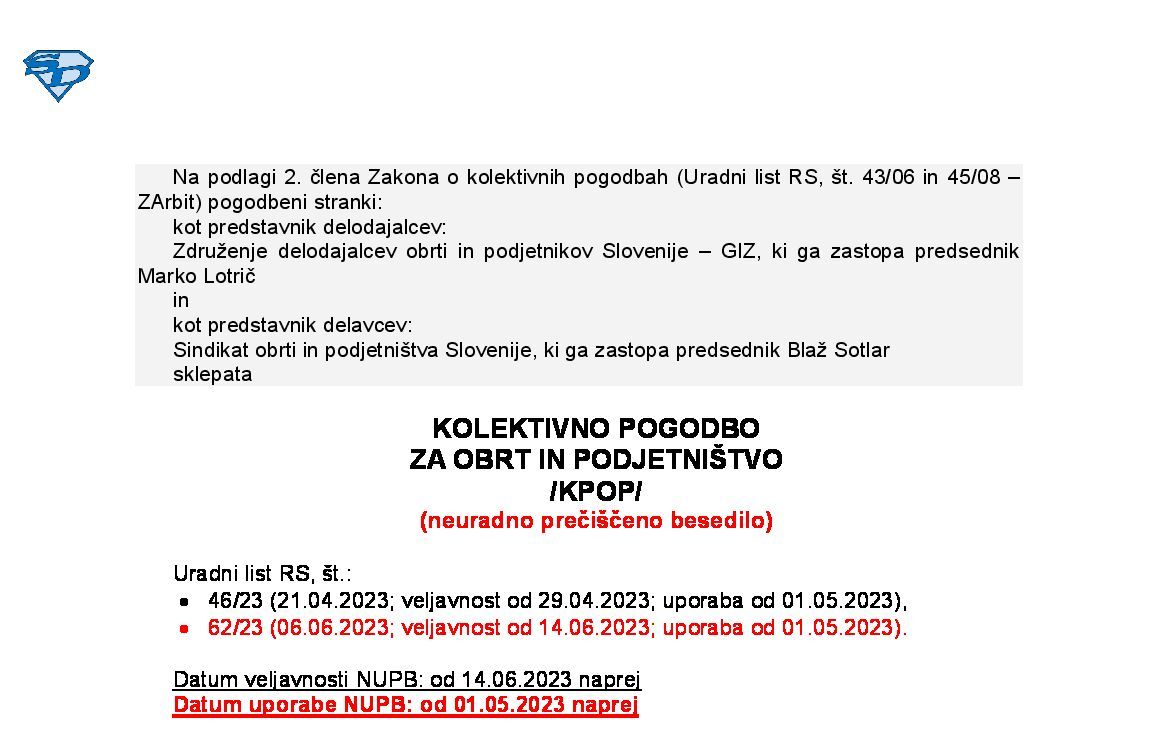 22.0 KOLEKTIVNA POGODBA ZA NEGOSPODARSKE DEJAVNOSTI V REPUBLIKI SLOVENIJI (KPnd) 27.12.2025 16.12.2025
