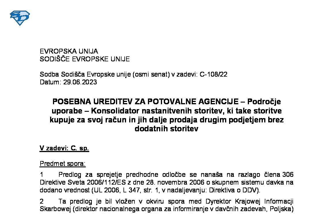 BREZPLAČNA PRAVNA POMOČ, KI JO ODVETNIK ZAGOTOVI STRANKI V SODNEM POSTOPKU – PLAČILO NAGRADE TEGA ODVETNIKA S STRANI PORAŽENE NASPROTNE STRANKE – Transakcije, ki so predmet DDV – Opravljanje storitev za plačilo (C-744/23) 23.10.2025 29.10.2025