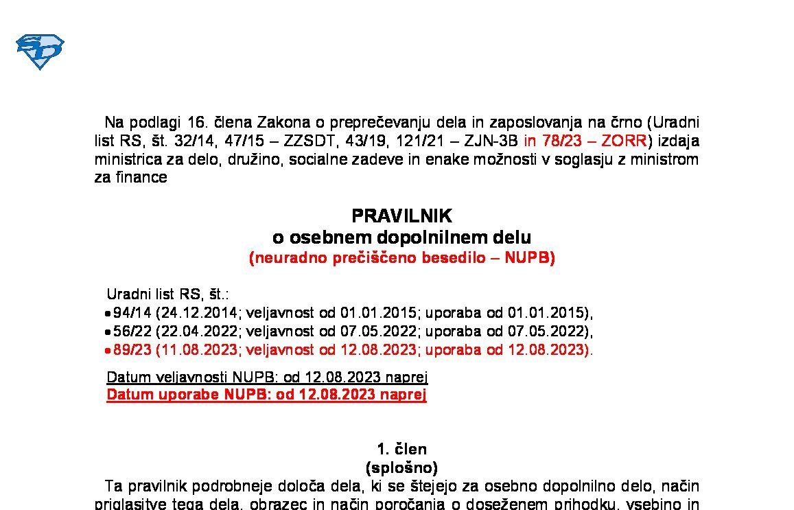 | Pravilnik za opravljanje dejavnosti zagotavljanja dela delavcev uporabniku (NUPB - neuradno prečiščeno besedilo) | 18.10.2025 | 20.10.2025 | ||