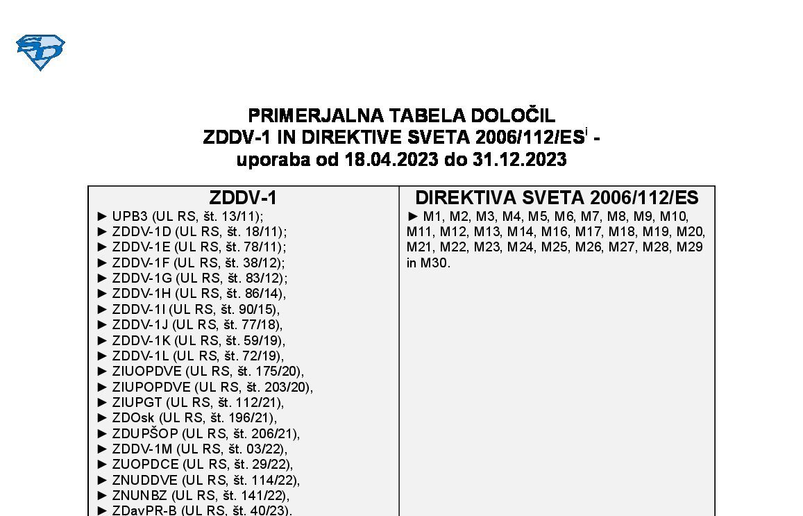 Primerjalna tabela določil ZDDV-1 in Direktive Sveta 2006/112/ES - uporaba od 01.01.2026 naprej 26.02.2026