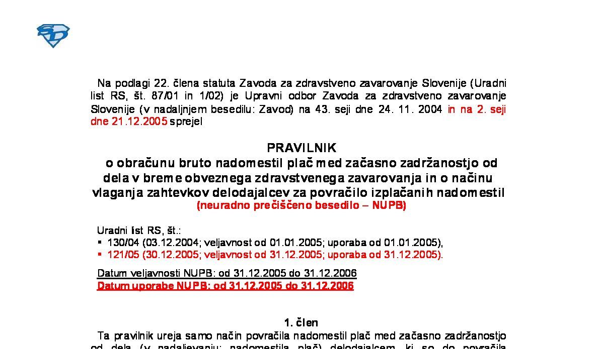 Pravilnik o obrazcu in listinah za uresničevanje obveznega zdravstvenega zavarovanja 23.09.2023 [!] 14.12.2023