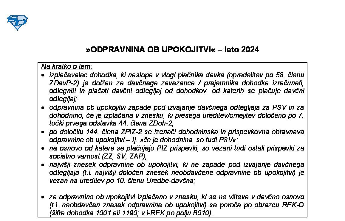 ODPRAVNINA ZARADI ODPOVEDI POGODBE O ZAPOSLITVI - leto 2024 28.11.2024