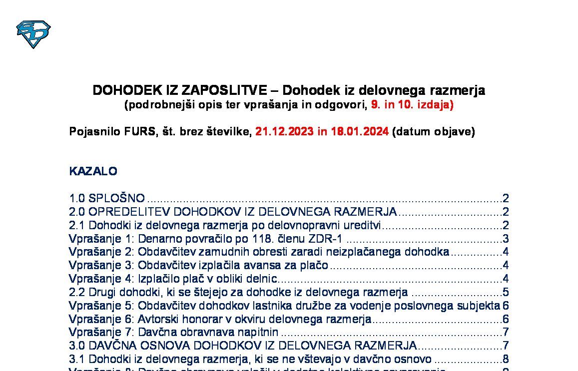 DOHODEK IZ ZAPOSLITVE – Dohodek iz delovnega razmerja (podrobnejši opis ter vprašanja in odgovori, 20. izdaja) 02.12.2025 04.12.2025