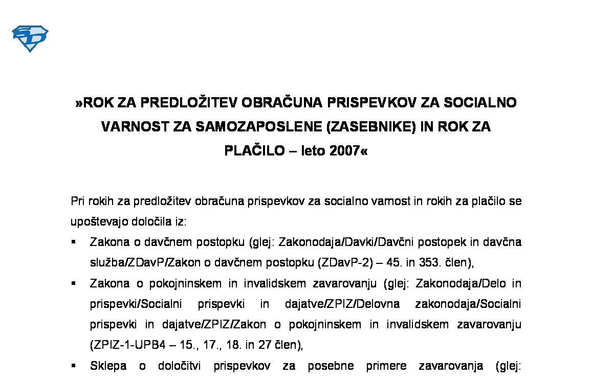 PREDLOŽITEV OBRAČUNA IN PLAČILO PRISPEVKOV ZA SOCIALNO VARNOST ZASEBNIKA (PSV zasebniki - obračun OPSVZ) - leto 2025 (januar - junij 2025) 13.01.2025