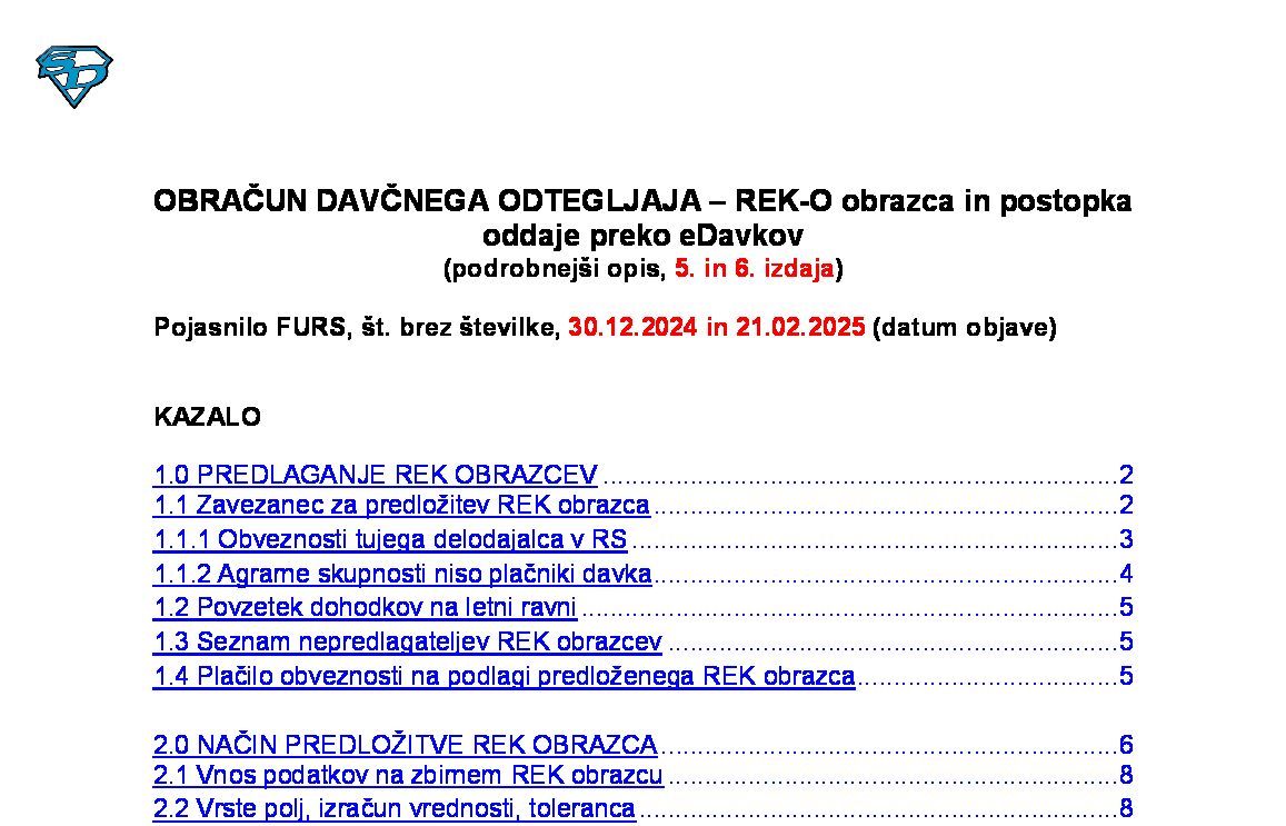 NAVODILA ZA IZPOLNJEVANJE OBRAČUNA DAVČNIH ODTEGLJAJEV – REK-O in REK-1b obrazec (podrobnejši opis, 13. izdaja) 24.11.2025 25.11.2025