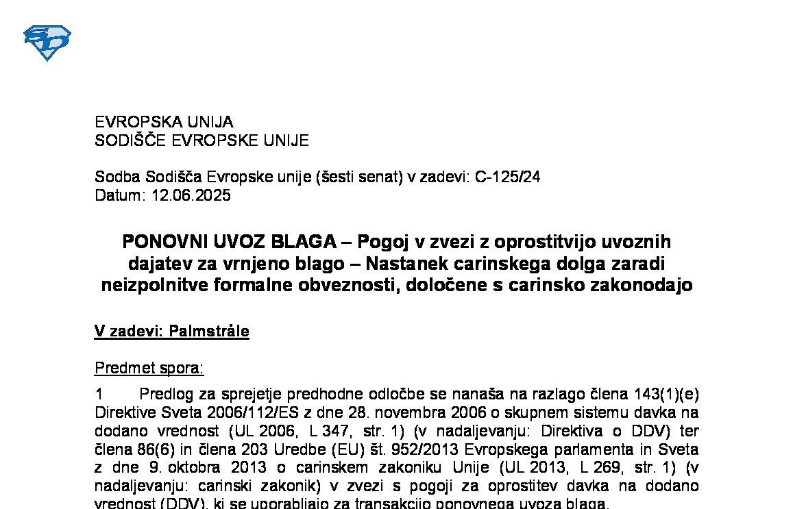 OPROSTITEV V ZVEZI Z DAJANJEM KREDITOV – OPROSTITEV V ZVEZI S FINANČNIMI TRANSAKCIJAMI – IZTERJAVA DOLGOV – Faktoring s prodajo terjatev – Faktoring z zastavno pravico (C-332/24) 23.10.2025 28.10.2025