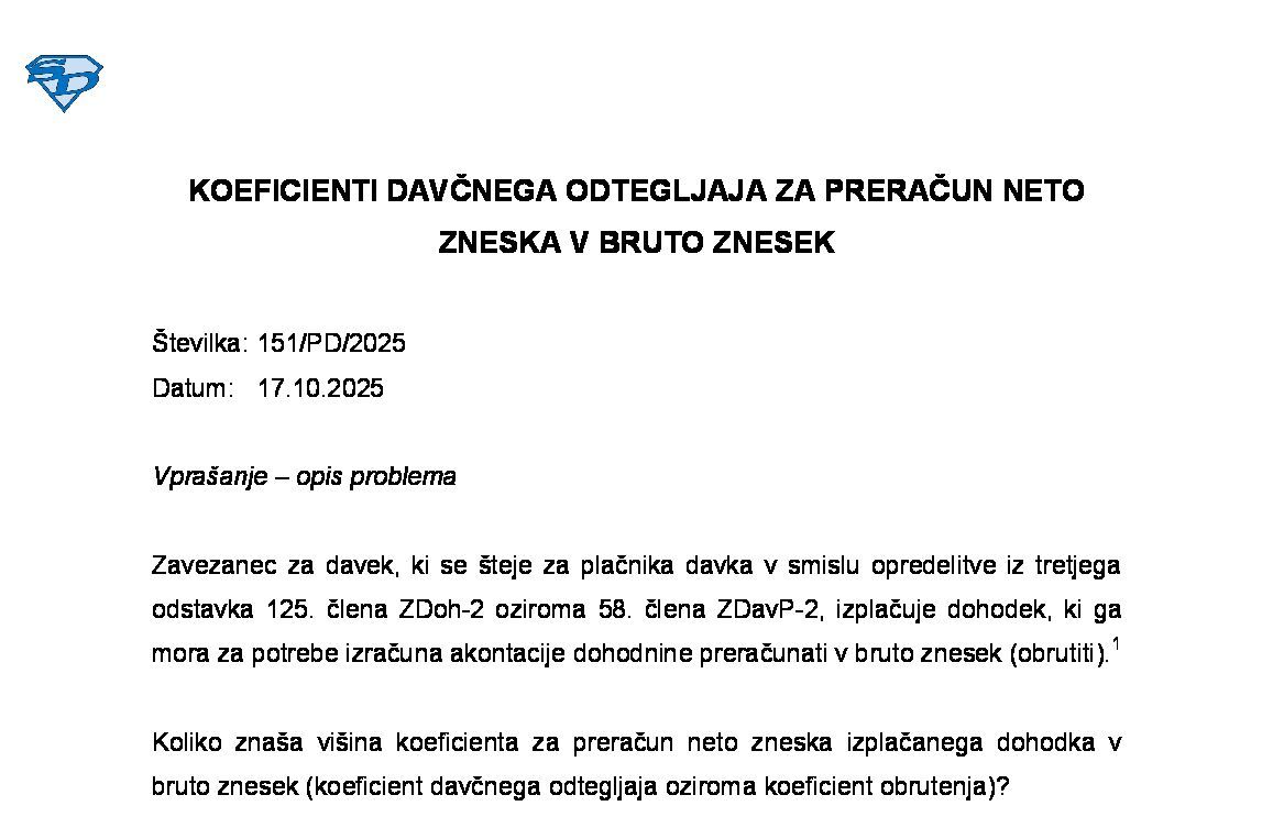 DOHODNINA OD DOHODKOV IZ DELOVNEGA RAZMERJA – Izračun akontacije dohodnine – Upoštevanje splošne olajšave in olajšave za vzdrževane družinske člane 19.11.2025 26.11.2025