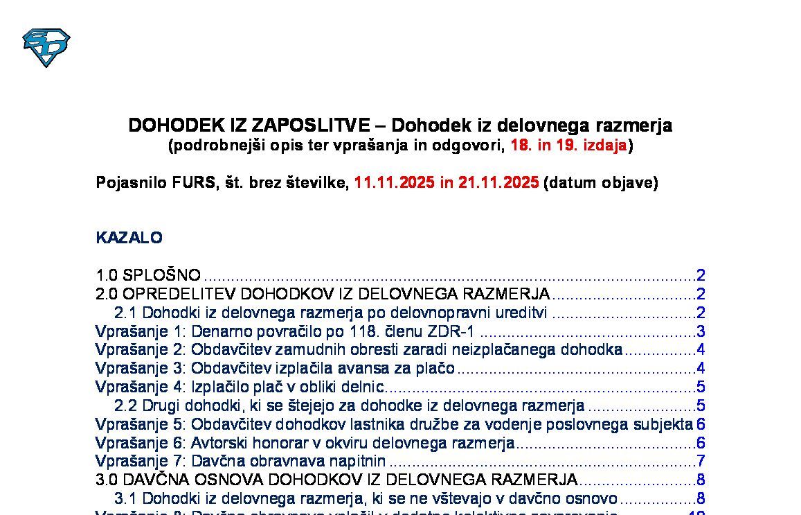 DOHODEK IZ ZAPOSLITVE – Dohodek iz delovnega razmerja (podrobnejši opis ter vprašanja in odgovori, 20. izdaja) 02.12.2025 04.12.2025