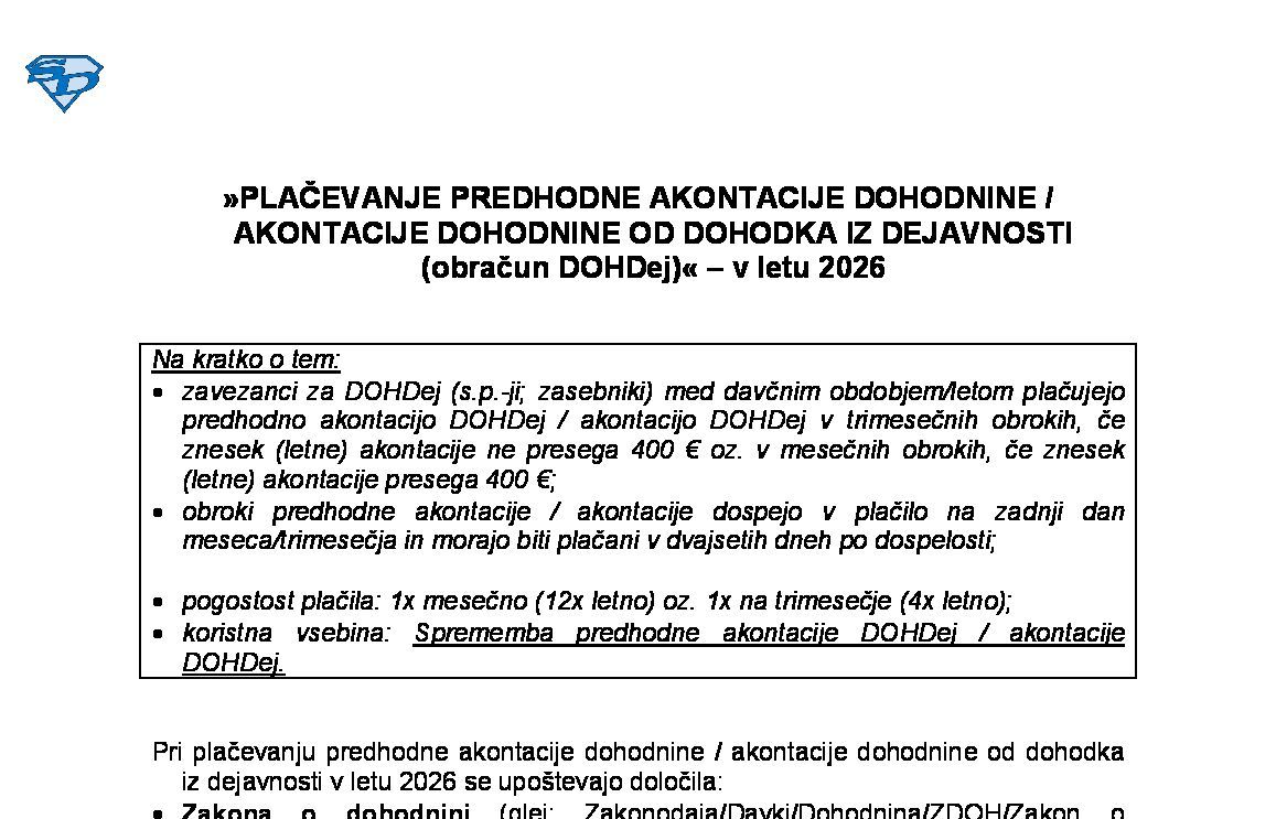 PREDLOŽITEV DAVČNEGA OBRAČUNA AKONTACIJE DOHODNINE IN DOHODNINE OD DOHODKA IZ DEJAVNOSTI (obračun DOHDej) - za leto 2025 12.12.2025