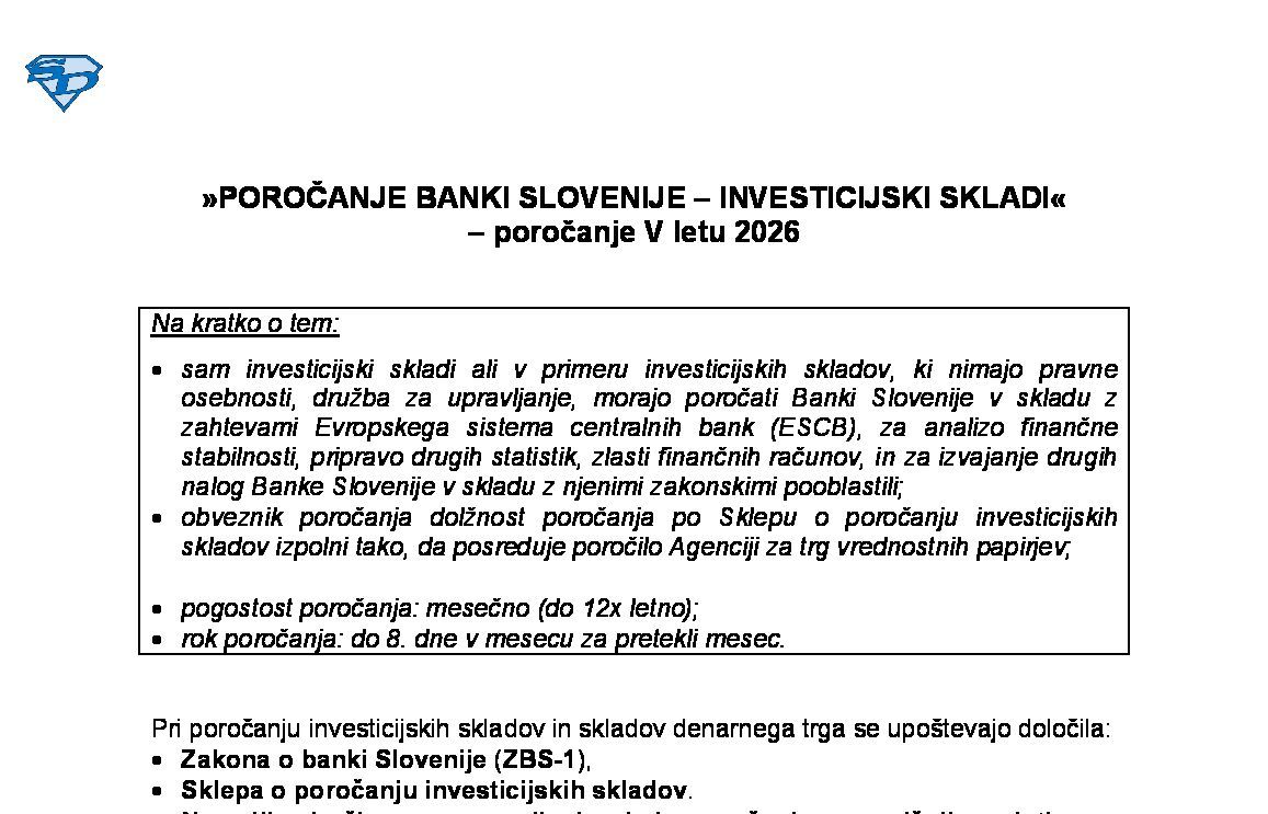 POROČANJE BANKI SLOVENIJE - POROČILO O POSLIH Z VREDNOSTNIMI PAPIRJI (poročila SRN, SNR, SNN, TNR, TRN, TRR) - poročanje v letu 2026 13.01.2026