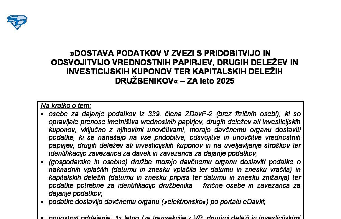 NAPOVED ZA ODMERO DAVKA OD DOBIČKA OD ODSVOJITVE IZVEDENIH FINANČNIH INSTRUMENTOV (DDOIFI) - ZA leto 2025 02.02.2026