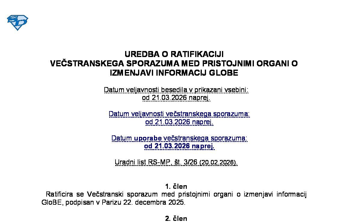 VEČSTRANSKI SPORAZUM MED PRISTOJNIMI ORGANI O AVTOMATIČNI IZMENJAVI INFORMACIJ O FINANČNIH RAČUNIH (NUPB - neuradno prečiščeno besedilo) 21.02.2026 [!] 04.03.2026