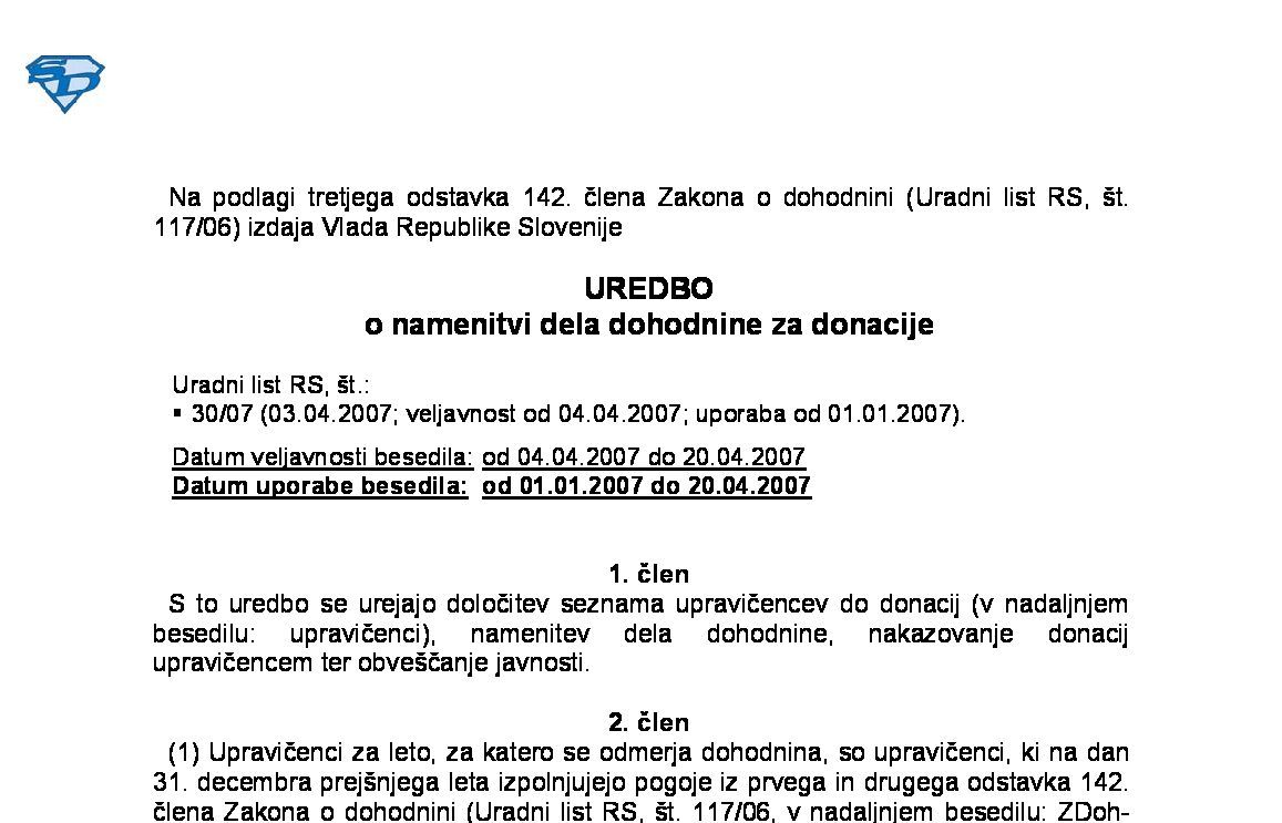 | Sklep o določitvi upravičencev do donacij za leto 2025 | 01.01.2025 | 31.12.2025 | 23.09.2025 | |