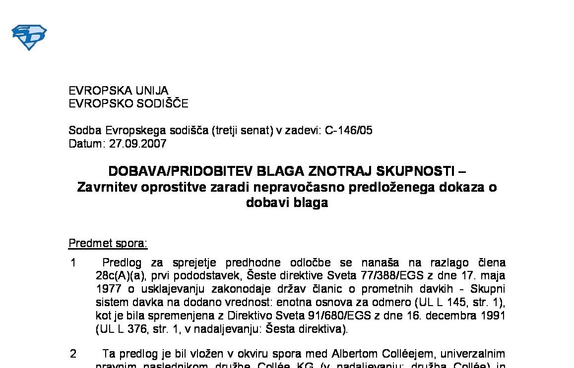 POGOJI ZA OPROSTITEV DOBAVE BLAGA ZNOTRAJ UNIJE – DOMNEVA – ZAHTEVANI DOKAZI – Člen 45a Izvedbene uredbe (EU) št. 282/2011 (C-639/24) 13.11.2025 14.11.2025
