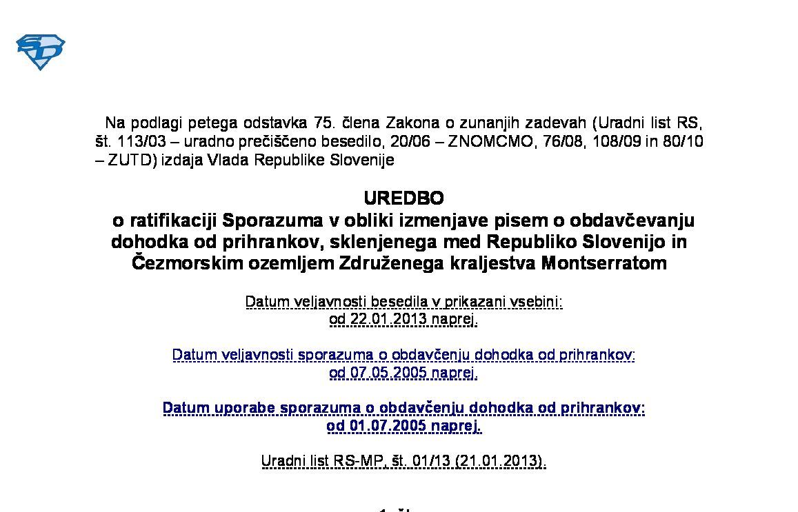 Prvotno objavljen sporazum v tej spletni podatkovni bazi z dne 20.03.2008, ki se je na podlagi obvestila MF uporabljal začasno, najdete v prilogi. MONTSERRAT (začasno).pdf